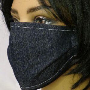 NEW DENIM FACEMASK. Deim Facemask with contrast white stitching, and skinny elastic. machine washable